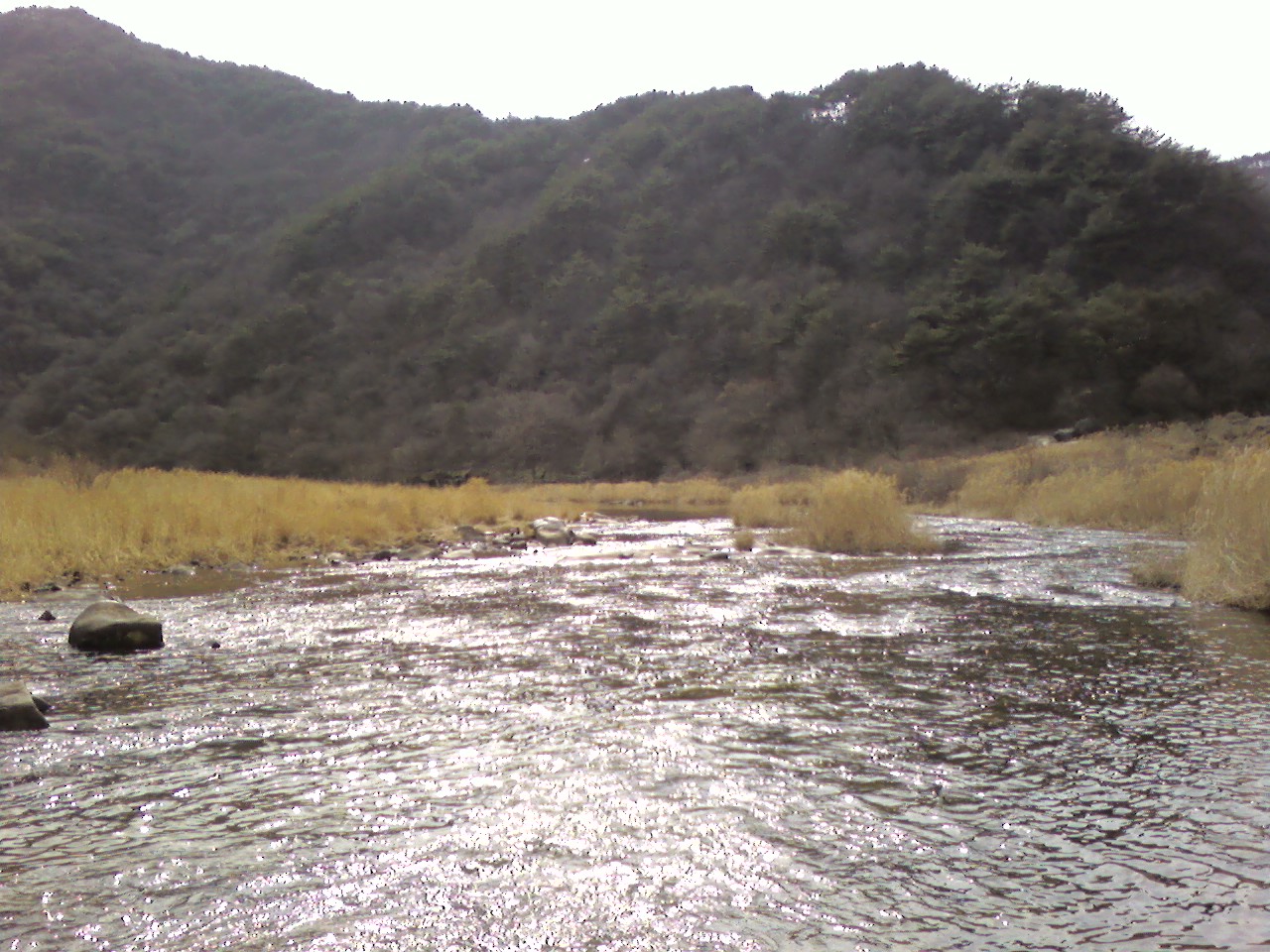 조금만 오래 들어 있으면 발가락이 얼어버릴 것 같다. 하지만 물 가운데에서 바라보는 풍경은, 강 옆에서 보는 풍경과 달랐다.