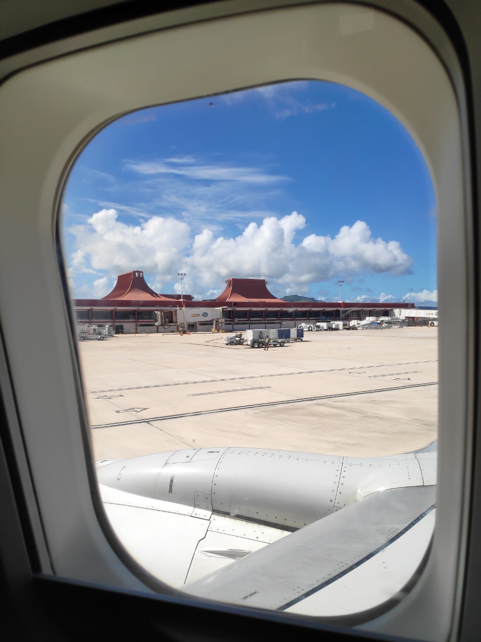 비행기 내리기 전에 창밖을 보면서도