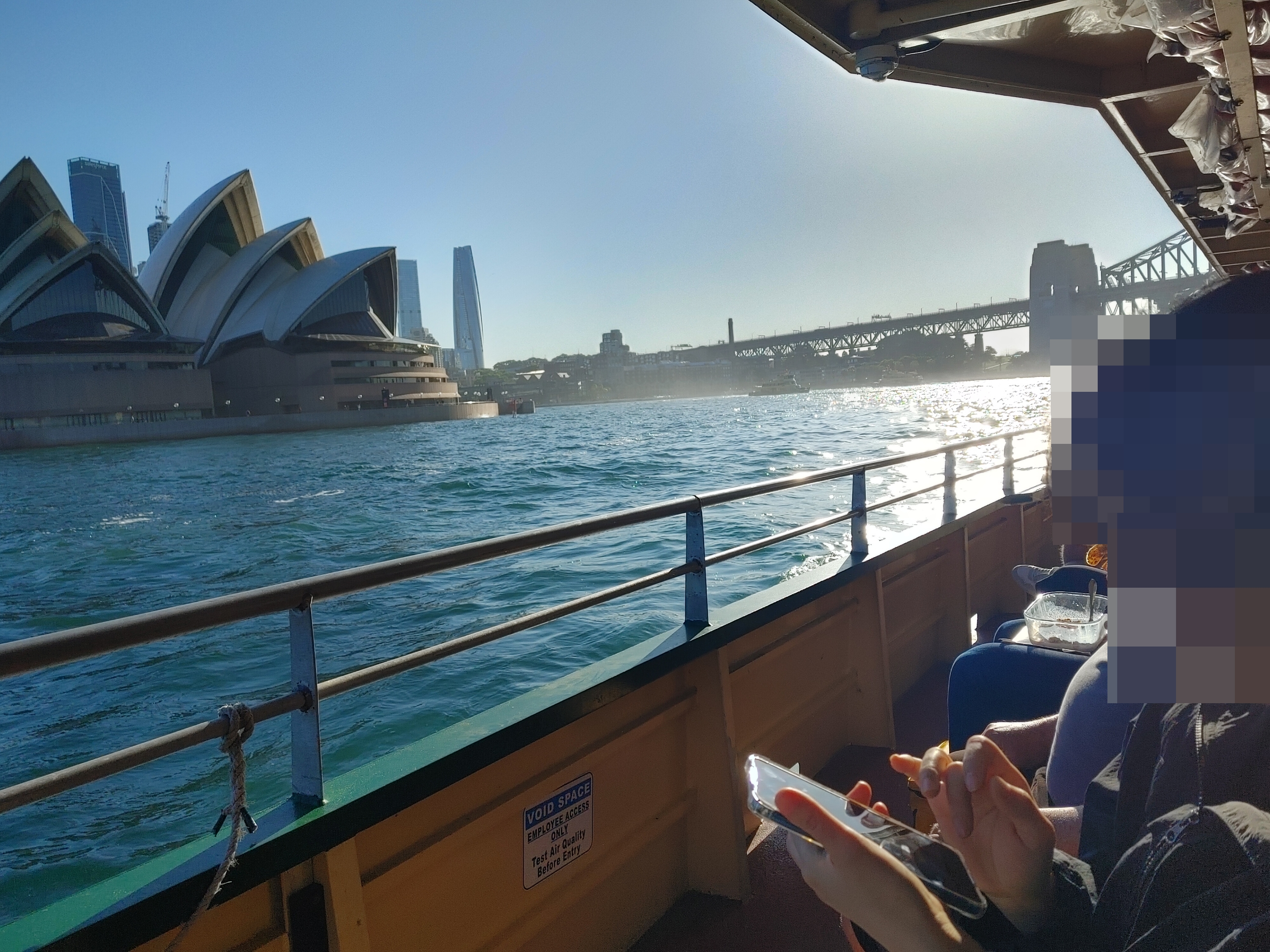 오페라 하우스 뷰를 위해 오른쪽 바깥에 앉았다. 퇴근자들(추정)과 함께.